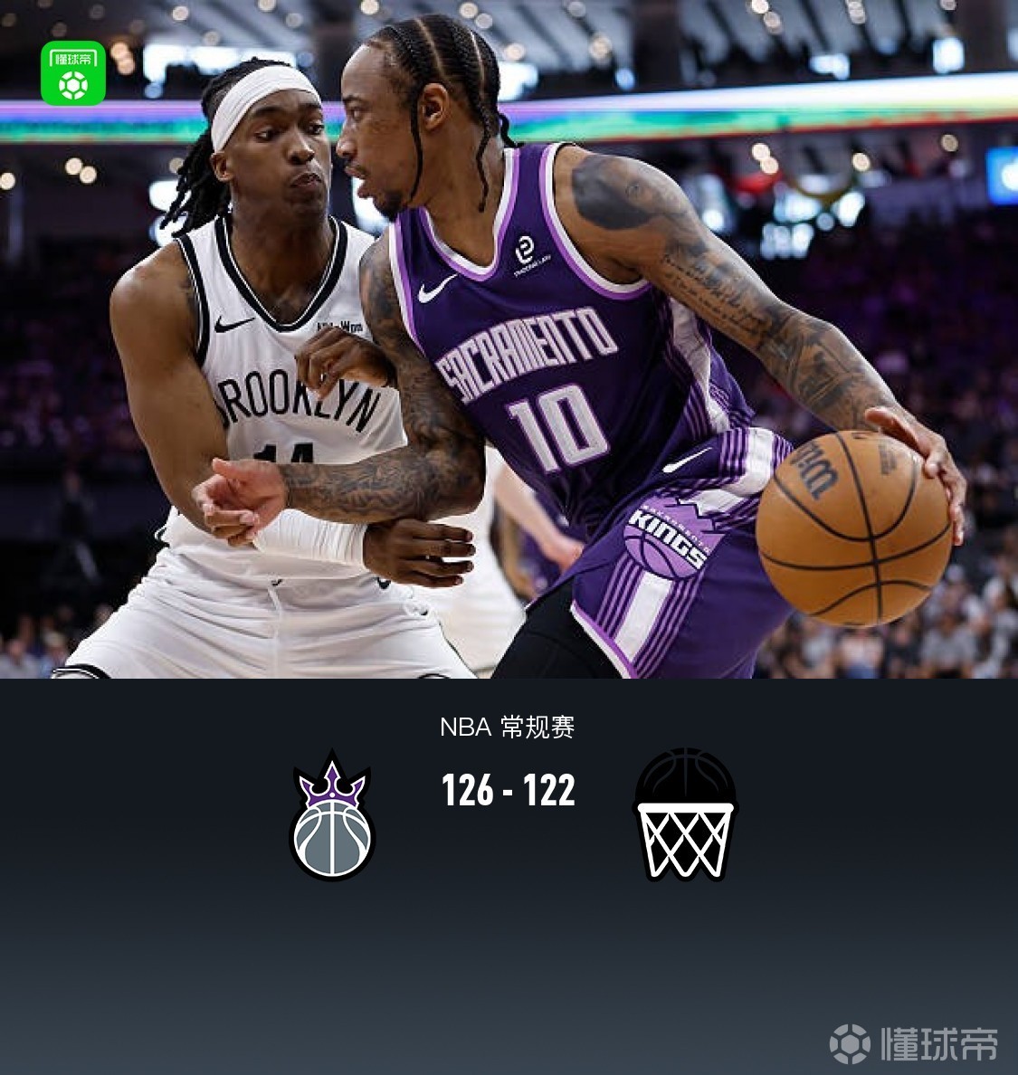 第四節(jié)國(guó)王蒙克拿下12分,籃網(wǎng)薩拉夫拿下12分,最終國(guó)王126-122戰(zhàn)勝籃網(wǎng)
