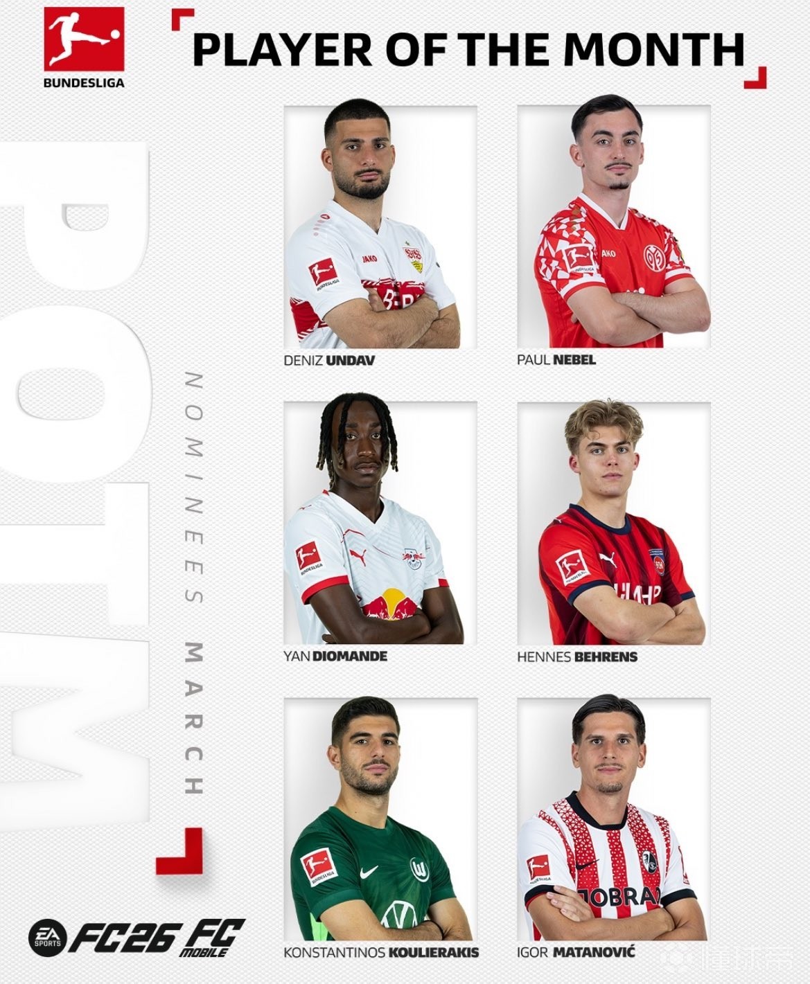 德甲3月最佳球員候選:昂達(dá)夫領(lǐng)銜,迪奧曼德在列